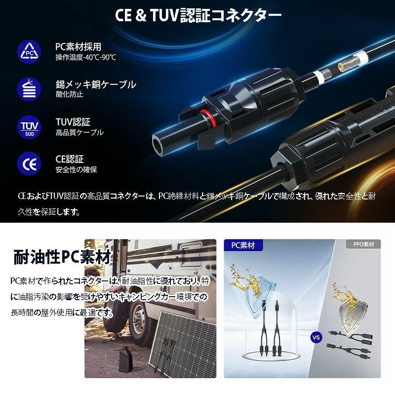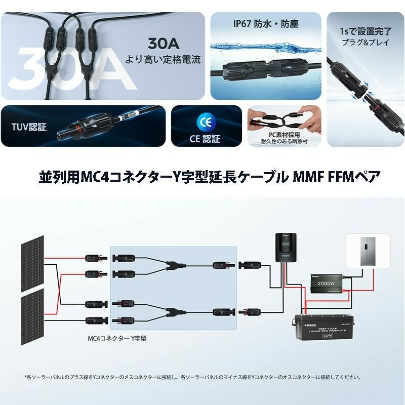 並列用MC4コネクターY字型延長ケーブル MMF FFMペア